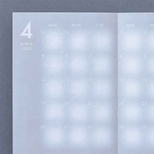 作品概要:日ごとに予定の量が違ったり、日を跨ぐ予定があったりするのに対し、従来の手帳は1マスの大きさが同じで、罫線によって日と日がきっぱり区切られている。私たちはそのような手帳のあり方に疑問を感じ、「うつろう手帳」を制作した。この手帳には罫線がなく、白とグレーのグラデーション(うつろい)のみで日々を分けている。これにより、書き手は予定の量に応じて1マスの大きさを自分で決めることができ、日を跨ぐ予定もつながりを感じながら書き込むことができる。